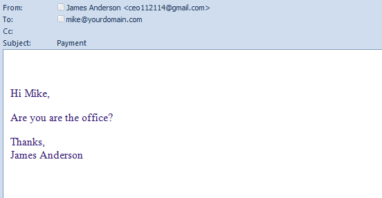 The really sophisticated ones will fake your colleagues' email and ask you a simple question like "are you in the office yet?" and then ask you for a money wire or to download something.